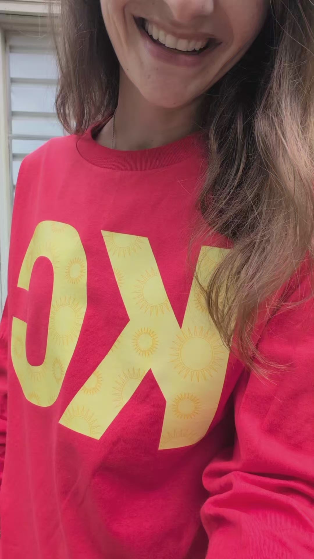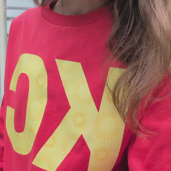 Bring the sunshine wherever you go with the Sunny KC Shirt! This bold red long sleeve is all about city pride with a playful twist—bright golden “KC” lettering patterned with tiny suns for that extra pop of cheer. Soft, lightweight, and perfect for layering, it’s the ultimate game day, weekend stroll, or cozy couch staple. A happy little nod to Kansas City and the sunny vibes you bring to it. 🌞